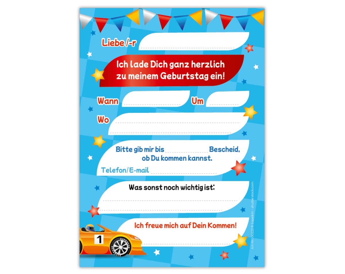 Enfin, tout doit être parfait. Nous attachons une grande importance à la qualité. Fabriqué en Allemagne : les cartes et enveloppes ont été produites dans une imprimerie allemande. Cela se reflète dans les cartes d'invitation et enveloppes de qualité supérieure. Pour noter toutes les dates importantes, il y a des champs pré-imprimés au dos de la jolie carte. Afin que même les plus petits ne soient pas gênés lors de la fermeture, l'enveloppe est munie d'une bande autocollante., Fabriqué en Allemagne. Pour que le cinquième anniversaire soit une superbe fête. Nous vous souhaitons beaucoup de plaisir à vos enfants et à leurs amis avec ce joli set. Vous pouvez par exemple noter votre souhait préféré ou annoncer qu'une soirée déguisée est prévue. Modèle Invitation D'anniversaire Pdf Lot De 12 Cartes D'invitation Avec 12 Enveloppes Pour Anniversaire D'enfant Garçon Voiture De Course Invitation D'anniversaire à Imprimer Pratique : champs pré-imprimés pour toutes les informations importantes à remplir à l'arrière. Autres : chez nous, vous trouverez également de nombreux autres motifs tels que le football, la ballerine, la sirène. Sur un champ supplémentaire pour d'autres remarques, l'hôte peut encore noter un ou un autre message important. Détails du produit : Les cartes au format A6 (10,50 cm x 14,80 cm) sont très stables. Les cartes et enveloppes proviennent de notre propre production et sont fabriquées en Allemagne. Ici, les invités chargés trouvent toutes les informations importantes. L'enveloppe (11,40 cm x 16,20 cm) est auto-adhésive (avec une bande déchirée).