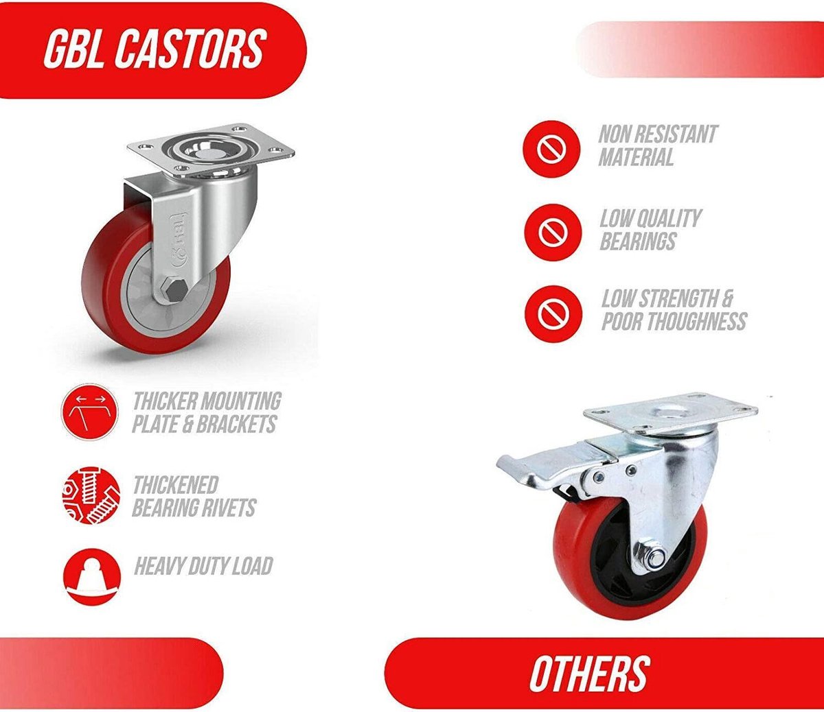 VEVOR Roulettes Pivotantes Lot de 4 Roulettes pour Meubles Industrielles 127 mm Ces 4 roulettes de 100mm avec frein total changent la donne ! Chacune supporte 150kg, soit 600kg pour le set. Elles tournent à 360°, et le double frein bloque à... Roulettes Pour Meuble Industriel ROUE - ROULETTE,Type 6--Roulettes Industrielles Pivotantes De 2 Pouces Roue Charge Lourde Lot de 4 roulettes diamètre 100 mm utilisée dans l’industrie pour sols lisse comprenant deux montures pivotantes à frein et deux montures pivotantes pour une charge de 600 KG. Les roulettes contiennent une roue en polyamide 6 ainsi qu’une monture en acier. Les avantages : économique, roulette pas chère. Très peu de force de poussée aux démarrage du chariot Parfait pour sols très... Les roulettes pivotantes VEVOR sont dotées de roulettes pivotantes de 3 pouces avec une capacité de charge robuste de 250 lb chacune, dotées de roues en PVC lisses et silencieuses et d'un système de verrouillage A/B sécurisé.