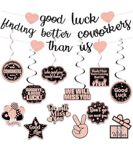 Les détails accrocheurs et les couleurs vives vous aideront à éclairer votre fête et à laisser une impression profonde pour vos invités. Qualité supérieure : la bannière « Good luck finding better coworkers than us » est fabriquée en papier cartonné imprimé à paillettes, durable et réutilisable ; un seul côté, imprimé numériquement sur du papier de qualité, avec des couleurs vives. Décorations « Good Luck Finding Better Coworkers Than Us » : vous recevrez 1 bannière « Good luck finding better coworkers than us », qui est conçue pour les femmes ou les hommes lors de leur fête d'adieu ou de sortie. Bannière dorée et rouge « Good Luck Finding Better Coworkers Bannière « Good Luck Finding Better Coworkers Than Us » pour fête de retraite, bureau, collègue, adieu en noir pailleté · ✨ Notre bannière est fabriquée en... Good Luck Finding Better Employees Than Us Bannière « », Décorations De Fête Pour Collègues, Fournitures De Fête D'adieu Et D'adieu, Fête De Départ D'un Collègue Good Luck Finding Better Coworkers Than Us Bonne chance pour trouver de meilleurs collègues que nous. Occasions appropriées : la bannière « Good luck finding better coworkers than us » est adaptée pour les fêtes d'adieu, les fêtes de sortie, les fêtes de retraite et plus encore. La bannière de fête d'adieu mesure environ 2,8 m de long. Il saura satisfaire vos besoins de décoration, ce qui rendra votre fête plus belle. Vous pouvez l'accrocher à l'endroit que vous voulez, tels que les murs, les fenêtres, les portes, la cheminée, l'arbre et plus encore.