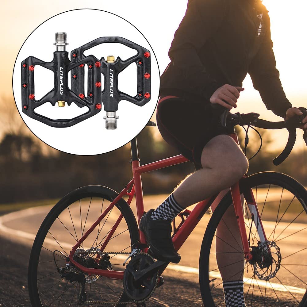 Contenu du paquet : 1 paire de pédales., Remarque : 1., La couleur réelle de l'article peut être légèrement différente de celle des photos présentées sur le site Web en raison de nombreux facteurs tels que la luminosité de votre écran et la luminosité., 2., Les mesures étant prises à la main, les tailles indiquées peuvent varier légèrement. * La pédale adopte un design intégré en fibre de carbone Velites Quad Ultra Pédales VTT Look X-Track Race Carbon - Liberté Angulaire 6 Pedale Velo Route * Ce qui est plus solide et a une meilleure performance de charge. * Ces pédales larges ne pèsent que 180 g (paire), les pédales de 99 mm de large soutiennent le pied plus uniformément pendant le cyclisme, offrant une expérience de conduite plus confortable pour vous. * Fabriqué en matériaux de haute qualité, durable, alliage de titane. Fabriqué avec des matériaux de haute qualité, durable, l'axe en alliage de titane le rend plus solide et léger. * Ces pédales à plateforme large ne pèse que 180 g (paire), les pédales de 99 mm de large soutiennent le pied plus uniformément pendant le cyclisme, vous offrant une expérience de conduite plus confortable. Nom du produit : pédales ultralégères en fibre de carbone. Achetez RACEWORK Pédale de vélo de route en fibre de carbone ultra légère Convient aux pédales de vélo professionnelles autobloquantes SPD / Keo de haute qualité. Pédales de vélo La Pédale De Vélo De Course Ultra Légère en Fibre De Carbone Texturée RACEWORK Convient Aux Pédales De Vélo Professionnelles Autobloquantes SPD/Keo. Pédale de vélo antidérapante (Tail Ces pédales à plateforme large ne pèse que 180 g (paire), les pédales de 99 mm de large soutiennent le pied plus uniformément pendant le cyclisme, vous offrant une expérience de conduite plus confortable. Pédales à roulement ultra légères en fibre de carbone... Poids : environ 181 g/paire. * Avec 10 clous antidérapants en alliage d'aluminium sur la surface de chaque pédale. L'axe le rend plus solide et léger Axe : alliage de titane. La fibre de carbone est plus robuste que l'aluminium, réduisant le poids total de votre vélo Design léger : ne pesant que 186 grammes par paire, ces pédales sont un choix idéal pour les cyclistes qui privilégient un poids minimal dans leur équipement ; le poids réduit améliore l'efficacité en nécessitant moins d'énergie pour...