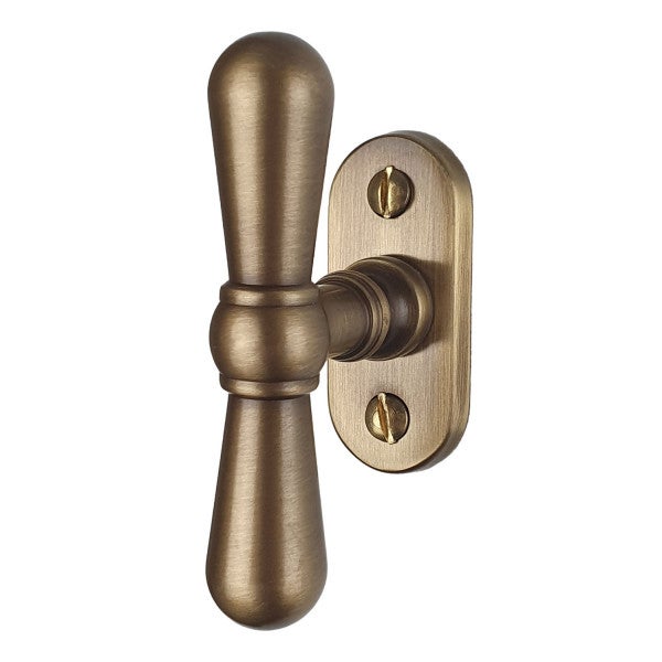 Poignée de fenêtre classique, entièrement olive en laiton patiné foncé – Modèle Altona A – Fabriqué à la main selon des modèles historiques. Des trouvailles d'autrefois ont servi de modèle pour notre bouton modèle Altona A ;. Une reproduction faite d'après un modèle historique présente un toucher qui correspond en fait au modèle historique et rappelle les boutons des époques passées. Charmante et attrayante, cette poignée de fenêtre attire... Votre spécialiste des ferrures historiques en France.Conseils d Fenêtre basculante rotative : idéale pour les fenêtres pivotantes Poignée de fenêtre historique : fabriquée à la main selon des modèles historiques en laiton patiné foncé Cette simplicité associée à une élégante fenêtre en bois donne une symbiose parfaite qui attire immédiatement l'attention. Veuillez noter que ce vieillissement chimique est également réalisé à la main et que de petites différences de couleur peuvent apparaître. Promesse de qualité Ventano : profitez de notre promesse de qualité Ventano Nos olives entières en laiton antique sont fabriquées individuellement à la main après 100 ans de modèles historiques, ébavurées, polies et ensuite chimiquement vieillies. Contenu de la livraison : poignée de fenêtre avec vis filetées à rosace II fixes, convient pour les fenêtres de forme actuelle (IV68, IV78, IV92) II carré (7 x 7 mm) compatible avec les fenêtres selon la norme actuelle Poignée De Fenêtre De Style Urbain | Poignée De Fenêtre Antique | Laiton Poli | Modèle "Altona B La forme et la fonctionnalité fascinent avec cette olive de fenêtre classique. Les lignes simples et classiques soulignent l'élégance discrète du laiton poli. Cette olive complète se distingue par son élégance sobre qui ne fait pas de fioritures. Cette simplicité associée à une élégante fenêtre en bois donne une symbiose parfaite qui attire immédiatement l'attention Ferrure de porte d'appartement en laiton antique - acheter à bas prix