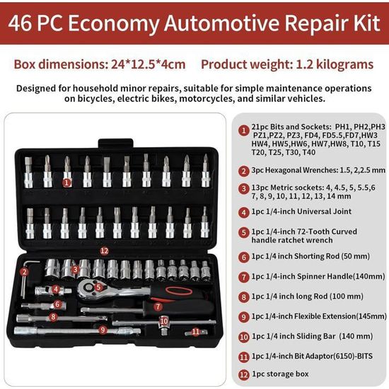 Clé Mixte À Cliquet 3-4 Sae 72 Dents 12 Points Cr-V[J942... Attributs :* Longueur totale : 190mm / 7., 48 pouces* Taille des deux extrémités : 9/16* Matériau : Acier au chrome vanadiumInclus :* 1 pièce x Clé mixteApplications et caractéristiques :--- La clé mixte à tête flexible est fabriquée en acier au chrome vanadium avec une surface traitée par électroplacage miroir poli avec nickel et chrome, cette clé à cliquet offre une durabilité exceptionnelle, une grande dureté et une résistance à la rouille. --- La clé mixte à extrémité à cliquet a une large gamme d'applications dans des secteurs tels que la machinerie, l'énergie électrique, le secteur domestique, industriel et minier. Jeu de clés à cliquet - YOSOO - 72 Dents CRV - Outil Manuel 8 10 12 Uxcell Clé Mixte à Cliquet à Tête Flexible SAE 72 Dents 12 Points Clé à Cliquet 3/4" Cr-V ★ Large gamme d'applications --- La clé mixte à extrémité à cliquet a une large gamme d'applications dans des secteurs tels que la machinerie, l'énergie électrique, le secteur domestique, industriel, vélo et garage. ★ Conseils utiles --- Portez toujours un équipement de protection approprié lors de l'utilisation de la clé à cliquet. Avec un angle de rotation minimal de seulement 5 degrés, nos clés à cliquet gèrent facilement les zones difficiles d'accès. ★ Taille du taraudage --- Longueur totale : 130mm / 5., 12 pouces, Taille des deux extrémités : 1/4 pouce Assurez-vous d'utiliser la bonne taille et évitez une force excessive pour éviter les dommages. Le mécanisme à cliquet efficace à 72 dents ne nécessite qu'un balancement de 5 degrés, idéal pour les espaces restreints, tandis que la fonction de libération... --- La clé à cliquet peut faire pivoter la tête flexible à 180 degrés, vous permettant d'appliquer une force de levier à n'importe quel angle souhaité et de contourner les obstacles, que ce soit dans des espaces restreints ou avec des obstacles, en ajustant l'angle de la tête flexible.