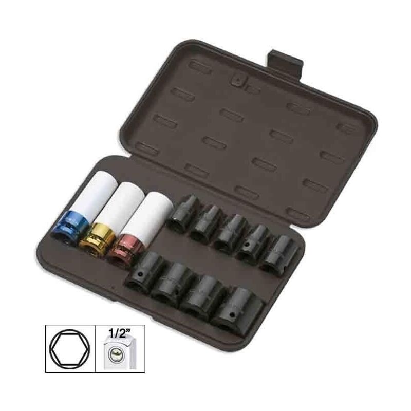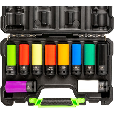 ESPECIAL EXTRACCIÓN RUEDAS BGS technic | Juego de llaves de vaso de impacto hexagonal | entrada 12,5 mm (1/2) | 10 - 24 mm | 10 piezas | comprar online Módulo de llaves combinadas con carracas, llaves de allen y puntas 13 Llaves fijas con un extremo de carraca de las medidas: 8mm, 9mm, 10mm, 11mm, 12mm, 13mm, 14mm, 15mm, 16mm ,17mm ,19mm, 21mm, 22mm 23 Puntas TORX, philips, hexagonales y planos Juego de llaves Allen en L Coffret Douille 12 Pans Set Vasos De Impacto De 1/2" Hex. Especial Extracción Ruedas [12 Vasos Douille Longue 3/8 Juego de vasos de impacto con 12 vasos largos de 1/2 hexagonales 3...