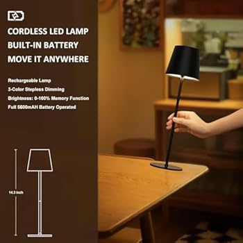 Vous pouvez obtenir une grande lampe de table portable si vous installez 2 tubes, et une plus petite si vous installez 1 tube, selon vos préférences et votre scénario. [Minimaliste pour votre vie] La lampe de table rechargeable dispose d’une batterie haute capacité intégrée de 5200 mAh et peut être utilisée pendant 10 à 40 heures sans interruption lorsqu’elle est complètement chargée, en fonction de la luminosité. Lampe Tactile Sans Fil Lampe De Table LED Sans Fil Lampe Intensité Variable Avec 3 Températures De Couleur Réglable - Lampe De Chevet Lampe Bureau Sans Fil Et pas besoin de s’inquiéter de la situation de batterie faible, car la lampe de table sans fil avec batterie sera complètement chargée en 4 à 5 heures avec le câble de charge USB-C inclus. La lampe de table rechargeable peut être utilisée comme éclairage de secours en cas de panne de courant et comme lampe portable dans tous les espaces intérieurs et extérieurs. skelo Lampe de table LED sans fil à intensité variable [Lampe de table multifonction portable] La petite lampe de table LED peut être emportée partout. Principaux points forts · Type de finition. Polie · Matériau de base. Métal · Dimensions du produit. 9P x 9l x 25H centimètres · Poids de l'article. 400 Grammes [Une meilleure lumière - une meilleure vie] Il croit toujours en ce credo et s’efforce de fournir à ses précieux clients les meilleurs produits d’éclairage intérieur. En même temps, c’est un cadeau fantastique et décoratif pour la famille et les amis. [Design moderne et de haute qualité] La lampe de table LED sans fil avec abat-jour triangulaire Reuleaux est élégante et durable, et l’abat-jour peut également couvrir la lumière pour protéger vos yeux. Offre eclair 16,00€ CNMTCCO Lampe de table sans fil à intensité variable - LED avec 3 températures de couleur - Intensité variable en continu - Lampe tactile... Décoration - Luminaire - Lampe de chevet - Lampe De Table LED Sans Fil Lampe Intensité Variable Avec 3 Températures De Couleur Réglable La lampe tactile dispose d’un variateur à 3 niveaux qui vous permet de régler la luminosité à 100%, 50% ou 15%, parfait pour toutes les humeurs et situations. La lampe sans fil convient au camping en plein air, à la cuisine, au bar, au café, à l’éclairage de fête, au salon, au patio, à la cour, au jardin et à la chambre à coucher, etc.