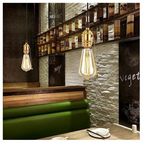 Suspension à douille en laiton pour ampoule à culot E27 40 watts | idéal pour les ampoules LED (non incluses)Classe de protection contre les éclaboussures : IP20Couleur:bronzeDescriptionLampesuspenduestyléeen bronze branchéLedesign industriel minimaliste est polyvalent et fait de cette lampe suspendue un point de mire au-dessus de la table à manger, dans la cuisine ou dans le salonLalongueur du câble est réglable individuellement (20cm - 120cm de profondeur de suspension) : convient également aux pièces bassesSansabat-jour : Variez le look particulier avec des ampoules de la forme, du design et de la température de couleur de votre choix, par exemple avec une lampe Edison ou une ampoule Globe ronde (non incluse)25168 Type de culot : E27. Ces supports de lampe sont idéaux pour les ampoules nues avec des ampoules Edison E27. E27 Vintage Rétro Plafonnier Bricolage Industriel 8... Diamètre : 50 mm, Diamètre (socle) : 120 mm, diamètre de l'abat-jour : 0 mm Dimensions : diamètre 29 cm, hauteur 23 cm · Diamètre du plafond : 10 cm · Câble : 100 cm · Type : lampe suspendue · Matériau : métal de haute qualité · Type d... Douille E27 Laiton Douille Avec Câble Vintage Rétro Pour Lampe Suspension, Culot E27 - Couleur Bronze Suspension Luminaire Doré Matériau: MétalCouleur: BronzeDimensions: profondeur de suspension: 200-1200 mmDouille: 1x E27 jusqu'à 40 Watt | ideal für LED ampoule (nicht incluse)Classe de protection: IP20 La lampe est fabriqué en métal