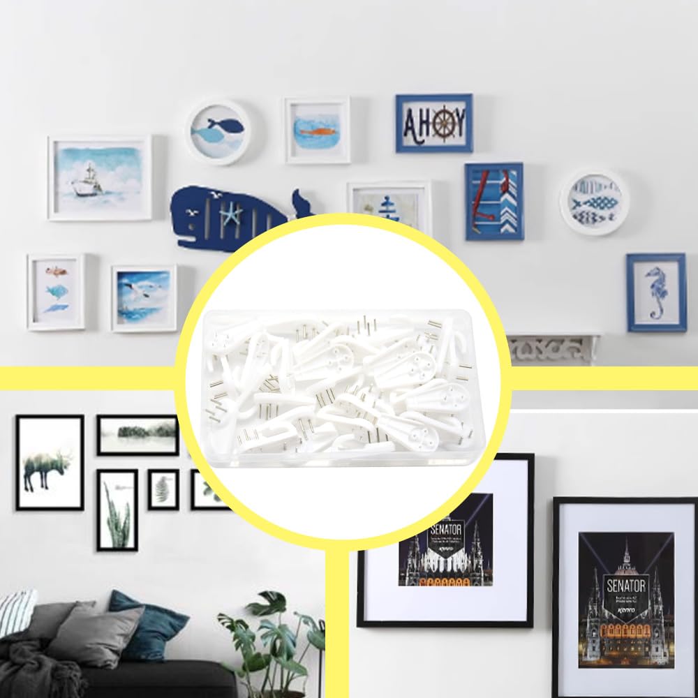 Dimensions : 30 x 15 x 5 mm., Quantité : 30 pièces., Couleur : blanc., Caractéristiques : 1., Facile à installer., 2., Dommages minimaux aux murs 3., Esthétiquement agréable sans traces 4., Matériau de haute qualité, durable. Dimensions : 39 x 19 x 8 mm., Quantité : 30 pièces., Couleur : blanc. (2) Veuillez les garder hors de portée des enfants pour éviter l'ingestion ou d'autres blessures. Ces 30 crochets invisibles s'installent en deux coups de marteau et supportent même les cadres un peu lourds. Plus besoin de percer ou de remplir des trous... Ils peuvent être utilisés pour accrocher des cadres photo, des horloges et d'autres décorations murales. Tableau de caractéristiques du produitCaractéristiqueDescriptionInformations générales sur le produit MarqueAUCUNE Nom du produitLot de 30 crochets de suspension pour cadre photo - 30 mm - Sans résidus - Crochets blancs pour cadre... LOT DE 30 Crochets De Suspension Robustes Pour Cadres Photo ● Les crochets de cadre photo non marquants conviennent pour accrocher des cadres photo, des montres, des clés, des parapluies et d'autres décorations murales différentes. Lot De 30 Crochets Adhésifs Pour Cadres Photo, Crochets De Suspension Robustes Pour Cadres Photo Petits Carres 91825958 Large application : les crochets de cadre photo en plastique conviennent à tous les types de murs, tels que les cloisons sèches, les murs en béton, les murs en calcaire, les portes en bois et ainsi de suite. Matériau : crochets en plastique et clous métalliques invisibles, beaux et faciles à utiliser. Ils peuvent être utilisés pour accrocher des cadres photo, des horloges et d'autres décorations murales.