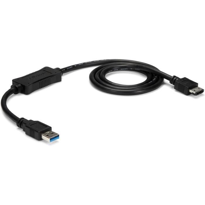 External Serial ATA câble de données pour connecter des périphériques externes tels que les boîtiers de disque dur directement à votre ordinateur ou les ordinateurs eSATA. DELOCK Câble d'alimentation Over eSATA > SATA à 22 broches 0,5 m Ce câble blindé permet de brancher un disque dur externe sur un port eSATA, permettant ainsi de profiter d'un débit pouvant aller jusqu'à 300 Mo/s KALEA-INFORMATIQUE Cordon De Liaison E-SATA Vers SATA 1m Pour Câble à haut transefert eSata à eSata II data 1 mètre - Ralonge...