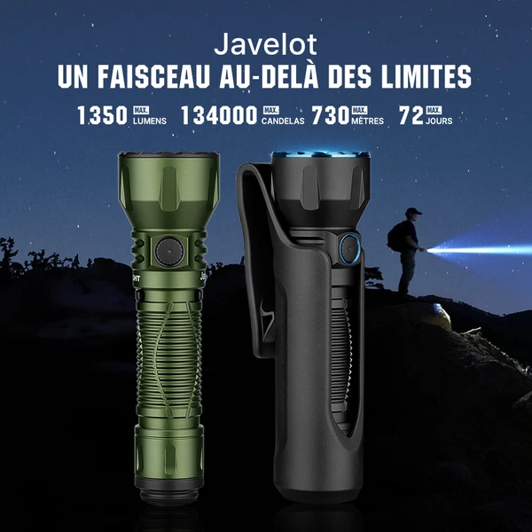 1 Javelot turbo 2 Super Puissante et Portée 3 Batterie énorme Lampe de poche tactique Javelot - 1350 lumens Olight - OD Green Telescope Astronomique Adulte Lampe DE Poche Olight Javelot Turbo Lampe Torche Led Ultra Puissante De Longue Portée 1300 Mètr Lanterne Huile Lampe Torche 1300 Lumens Rechargeable OLIGHT Javelot Turbo 1300 Lumen Lampe de poche LED Rechargeable Puissante NW LED Lampe de poche Max 1300 mètres pour l'application de la loi, la recherche et le sauvetage en plein air : : Outils et BricolageOLIGHT s'efforce de fournir des outils d'éclairage de pointe pour vous aider à faire de votre mieux dans votre travail quotidien ou votre exploration en plein air. Y compris les... 【Autonomie Prolongée】Avec la batterie de grande capacité, Javelot Turbo est capable de fonctionner pendant 318 heures. La Valkyrie Turbo est la première lampe militaire Olight à adopter une source lumineuse LEP, elle peut être fixée sur les rails Picatinny 1913 et Glock 【Portée Super Longue】Équipée d'une ampoule LED neutre blanche et d'un réflecteur métal de diamètre jusqu'à 63 mm, sa portée peut atteindre à une distance de 1300 mètres. 【Indicateur d'alimentation】Le voyant tricouleur est intégré au bas des boutons latéraux. Javelot Turbo produit 15 lumens avec une légère pression et 1300 lumens avec une forte pression; quatre niveaux de luminosité de sortie peuvent être sélectionnés pour le bouton latéral du cou, satisfaisant usage quotidien. Capuchon arrière deux en un : charge magnétique et fonctionnement du pouce.