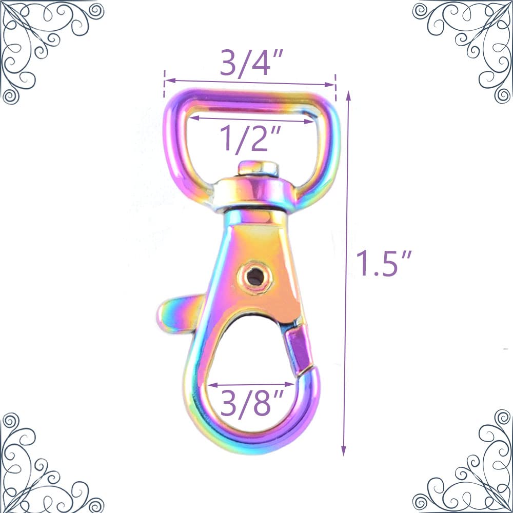 Le colis est livré avec 20 fermoirs mousquetons en métal et un porte-clés Caractéristiques du produit : Quantité : 20 pièces. Lot De 20 Fermoirs Pivotants Arc-en-ciel - Fermoir Mousqueton Dimensions : 38 mm de longueur et 13 mm de largeur intérieure. Idéal pour les sangles ou les cordons en ruban et pour la fabrication de sacs ou de sacs à main Et utilisez ces clips pivotants pour profiter de la beauté du temps fait main avec vos amis et votre famille. Large application : ils sont parfaits pour les porte-clés, les laisses de chiot, les travaux manuels ou les décorations, la fabrication de bijoux, les chaînes de pull, les accessoires de ceinture de sac à main. Lot de 20 mousquetons pivotants en métal de 1,9 cm pour la fabrication de bijoux Ne vous inquiétez pas de la rouille et de la casse. Joli cadeau : ils ont également un aspect brillant exquis. Bonne taille pour correspondre à vos projets de couture et fabrication de bijoux. Matériau : les fermoirs mousquetons sont fabriqués en alliage de zinc robuste, antirouille et résistant à la corrosion, durable et durable · Dimensions Le mousqueton est en métal non magnétique, seule la vis au milieu est magnétique. S'ouvre et se ferme en douceur. Informations sur le produit : le crochet de porte-clés mesure 38 mm de long et 13 mm de largeur intérieure.
