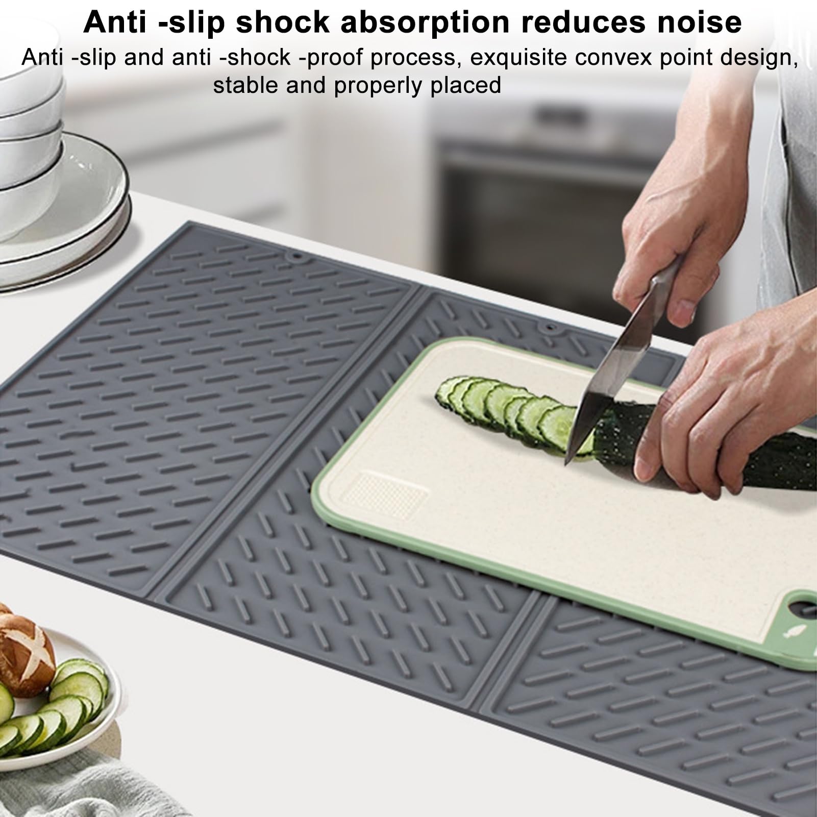Organisez l'espace et le temps de votre cuisine avec ces tapis de séchage élégants. E-RFSEY Diatoite Stone Tapis de Bain en Pierre, antidérapant, Super Tapis de séchage en silicone pour la cuisine, écologique, antidérapant, facile à nettoyer, résistant à la chaleur : : Cuisine et MaisonÀ propos de cet article Tapis de drainage et antidérapant : éviers scientifiquement conçus pour un drainage efficace. Le tapis en silicone a la fonction d'amortissement antidérapant et silencieux. La cuisine ne dérangera pas le reste de... Facile à nettoyer : vous voulez cuisiner pendant dix minutes mais nettoyer pendant une demi-heure ? Les tapis de vaisselle pour comptoir sont la meilleure aide dans votre cuisine. La cuisine ne dérangera pas le reste de votre chère famille dans un environnement calme. Les stries double face aident à garder le tapis en place et à maintenir les objets sur le dessus en même temps, sûr à utiliser. Tapis de drainage et antidérapant : éviers scientifiquement conçus pour un drainage efficace. Lors du lavage de la vaisselle, il y aura inévitablement des gouttelettes d'eau sur la table de la cuisine, peu importe la saleté, après l'utilisation de l'eau, il suffit de rincer doucement avec la même que la nouvelle. Notre tapis de cuisine en silicone résiste bien à l'eau et à la chaleur, de sorte que vous pouvez y poser librement les casseroles et les plats chauds. Mettre des couverts tels que des couteaux et des fourchettes sur le tapis de séchage sera très beau et très agréable à l'œil. Résistant à la chaleur]: Il peut résister à la chaleur jusqu'à des températures élevées de 450 degrés Fahrenheit (450 F). Il peut servir de tapis de dessous... Tapis En Silicone Pour Sécher La Vaisselle Sur Les Plans De Travail De Cuisine Resistant A Chaleur Et Antiderapant 98144681 Taille : tapis de séchage à vaisselle gris et noir 30,5 x 40,6 x 45,7 cm.