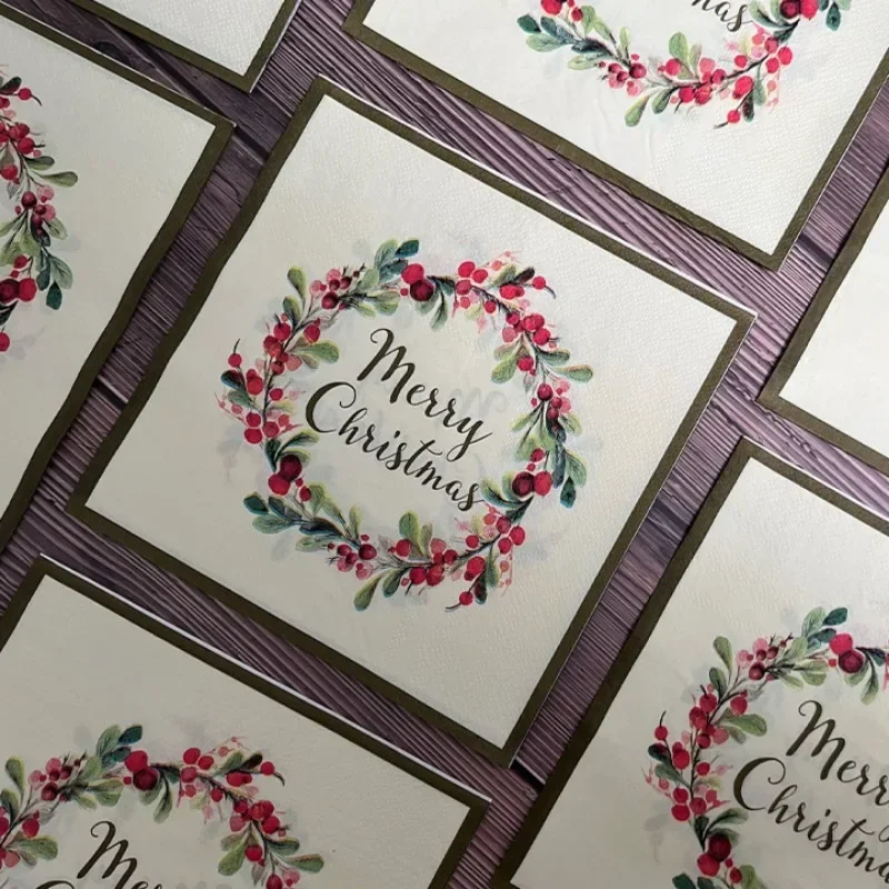 Carré de 33 cm dépliée , 3 plis Disponible avec les licences LD et DG. pliage serviette noel Le tuto : /2015/12 Ils sont bons pour l'environnement., Fabriqué en Allemagne 20 pièces 33*33 cm 2 plis couronne de baies rouges serviettes de noël décoration de fête papier joyeux noël imprimé napperons en papier. 2,10€. Couleur... Feuille De Noël Aquarelle Et Couronne De Baies Rouges Avec Des Paillettes De Cadre Doré 13441870 PNG Chaque serviette mesure 33 cm ou 33 cm carré lorsque déplié., Ils sont 3 plis. Les serviettes sont imprimés avec des couleurs à base d'eau sans utilisation de chlore sur cellulose sur du papier recyclé.