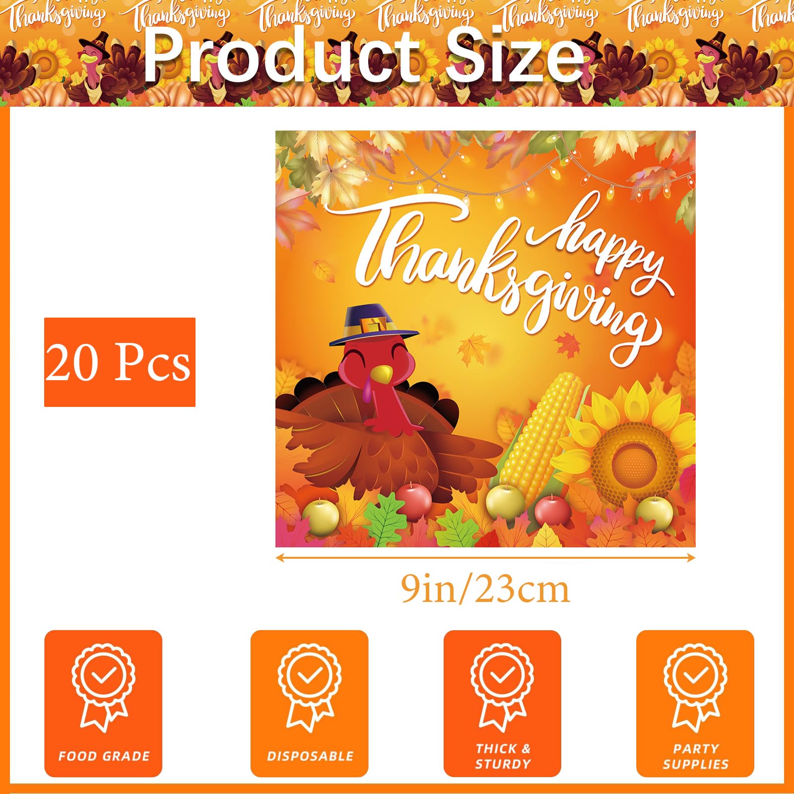 Description du produit:1., Cet ensemble comprend tous les articles de table dont vous avez besoin pour votre fête2., Le motif peut ajouter une atmosphère plus festive à votre fête et vous rendre heureux et apprécier votre fête de vacances., 3., Cet ensemble est idéal pour À l’automne, Noël, les fêtes à thème, les buffets de desserts, les pique-niques et autres événements gastronomiques. Design délicat : cette vaisselle sur le thème de Thanksgiving présente une citrouille, des feuilles d'érable et des fruits d'automne, avec des mots « Thanksgiving », etc. motifs sur nos assiettes et serviettes de fête de Thanksgiving, ajoutant une atmosphère chaleureuse à votre décoration de fête Il s'agit d'un service de table à l'atmosphère festive. Ensemble Assiettes De Table Vaisselle De Fête De Thanksgiving,Ensemble De Vaisselle D'automne De Nappe Papier Anniversaire Le nettoyage de la vaisselle est très facile, le désordre peut être nettoyé immédiatement après la fête. Présentation du produit Vaisselle de Fête Thanksgiving,Ensemble Vaisselle de Fête D'anniversaire,Automne Party Supplies,Dinde Plaques en Papier Servi. [D709] ️ Comprend l'emballage : 53 pièces au total,16 assiettes à dîner de 9 pouces, 16 gobelets en papier, 20 serviettes en papier, 1 nappe de table 137*274 (Pour les produits inclus dans le package lui-même, veuillez vous référer à... Fournitures De Fête D’automne Thanksgiving Ensemble De Vaisselle Jetable Dautomne Avec Feuilles Derable Assiettes En Papier Dore Serviettes De Table Gobelets Fourchettes En P 🦃️ Gagner Du Temps : Le set de vaisselle de fête contient presque toute la vaisselle dont vous avez besoin, vous n'avez pas besoin de passer trop de temps à chercher la bonne vaisselle. 🦃️ Comprend l'emballage : 53 pièces au total,16 assiettes à dîner de 9 pouces, 16 gobelets en papier, 20 serviettes en papier, 1 nappe de table 137*274(Pour les produits inclus dans le package lui-même, veuillez vous référer à la description du titre en fonction de la catégorie que vous avez sélectionnée).